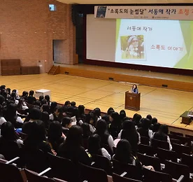 전체 글 썸네일형 리스트형 소록도의 눈썹달, 2019년 행복한 아침독서추천도서 선정!! "작가님~~소록도의 눈썹달, 2019년 행복한 아침독서 추천도서로 선정 되었어요! 축하드립니다." 출판사 대표의 카톡 문자를 받았다. "고맙습니다. 다 대표님께서 홍보와 마케팅을 잘해주신 덕분입니다." 나는 대표에게 답장을 보냈다. 아마 계속 통화 중이어서 카톡으로 보냈을 것이다. 정.. 더보기 콩벌레/ 김정련 글 / 김민경 그림/ 한그루 출판 콩벌레 작가 김정련 출판 한그루 발매 2018.10.30. 리뷰보기 동시집 콩벌레를 읽었다. 동시가 제 4부로 나누어졌다. 제주의 바다, 들과 산 등 자연, 그리고 마음 따뜻한 가족 이야기. 한편, 두편 글을 읽다보면 어느덧 동심으로 돌아가 가슴이 쿵쿵!! 작가의 인성과 심성, 그리고 자연을 얼마나.. 더보기 소록도의 눈썹달 l 2018년ㅣ 세종 문학나눔 우수도서 선정!! 소록도의 눈썹달이 2018년 세종 문학나눔 우수도서 선정되었다. 정말 기쁘다. 더보기 뇸뇸이 / 글. 이우/ 도담소리 그림 동화, 「뇸뇸이」를 읽고 표지부터 화사한 노란색 배경이 따뜻하게 느껴진다. 화사한 꽃 모양과 행복하게 웃고 있는 어린 염소가 참으로 귀엽다. 유아를 비롯하여 전 세대가 함게 읽어도 좋을 것 같은 뇸뇸이다. 무엇보다 글과 그림을 다 한 작가는 36 년 동안 초등학교에서 아이들을.. 더보기 순천 효천고등학교 초청 강연회 20년의 만남! 들판이 황금빛으로 출렁이는 10월 4일. 순천 효천고등학교 소록도의 눈썹달, 작가 초청 강연을 했다. 둘째 아이의 모교인 효천고는 내가 3년 동안 어머니회 임원과 제 12대 어머니회 회장으로 활동했다. 꼭 20년이 되는 해 학부형이 아닌 작가로 초청되어 낯익은 대강당에서 1.2.. 더보기 엿장수 맘이래 사리진 문화 세대공감 엿장수 맘이래/ 그림동화 더보기 웃음꽃 공기놀이 웃음꽃 공기놀이 더보기 내가 할래 (그림동화) 내가 할래 더보기 이전 1 ··· 3 4 5 6 7 8 9 ··· 27 다음